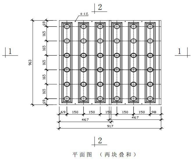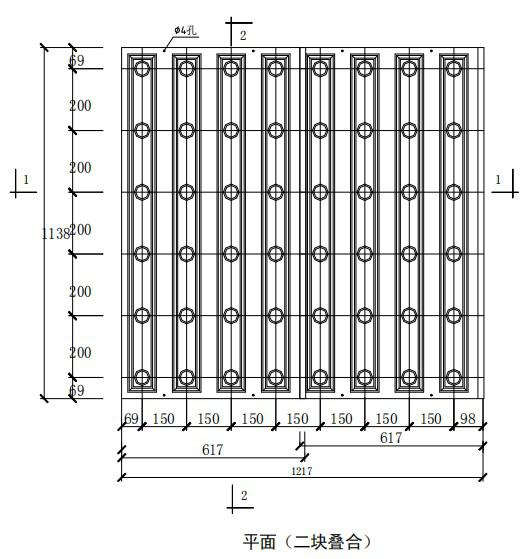 C型模板:濾板厚度為120mm,其承載正向強度不小于80kN/m2反向強度不小于80kN/m 2(改變配筋由設計根據承載強度復核重新配置)。縱向主筋Φ10應埋設在模板凹槽內。橫向主筋Φ12應與濾板支 撐預留鋼筋Φ12焊接。