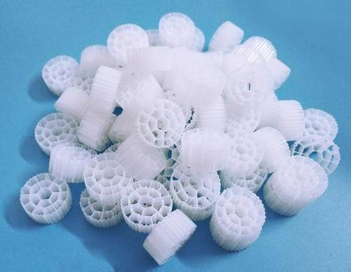 MBBR流化床填料是一種應(yīng)用在mbbr工藝中的微生物載體,污水以一定的速度從下向上流動,使填料處于流動狀態(tài),因此也叫流化床填料。它采用科學(xué)配方,根據(jù)不同水質(zhì)需求,在高分子材料中融合不同種類有利于微生物快速成附著生長的微量元素,經(jīng)過特殊工藝改性、構(gòu)造而成,具有比表面積大、親水性好、流動性好、生物活性高、易掛膜、處理效果好、使用壽命長等優(yōu)點。